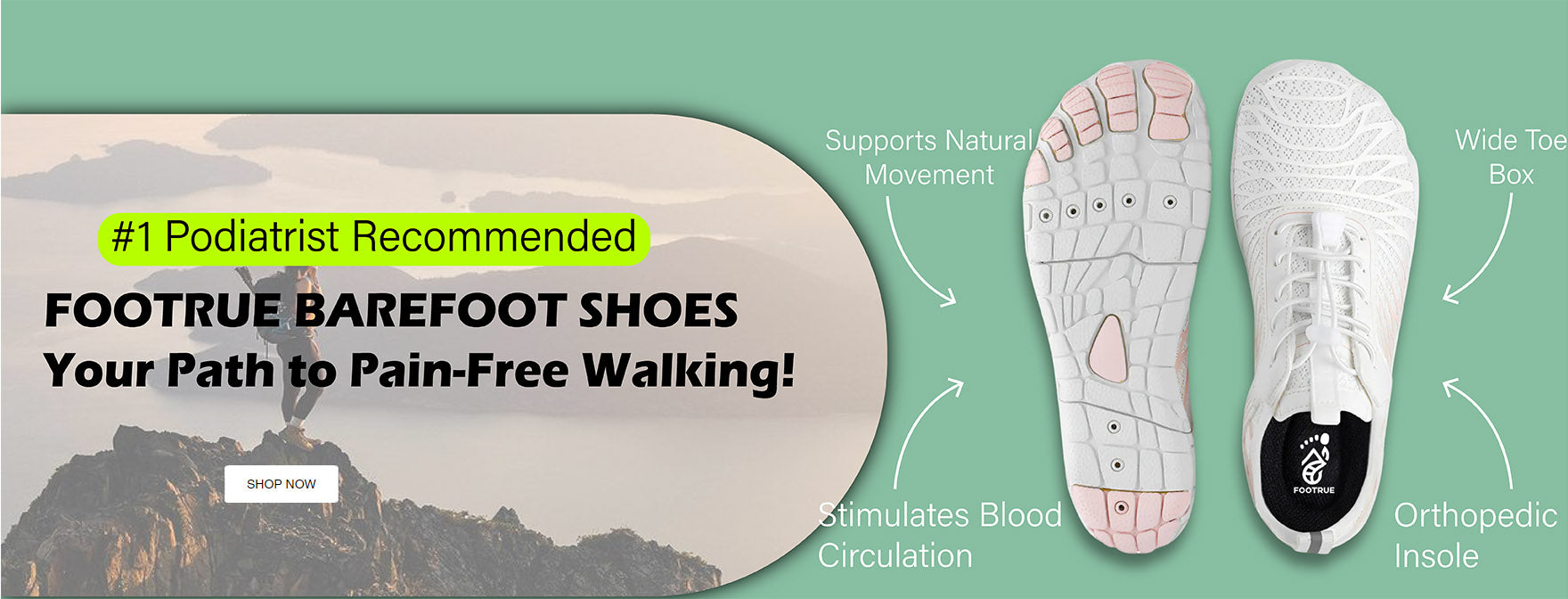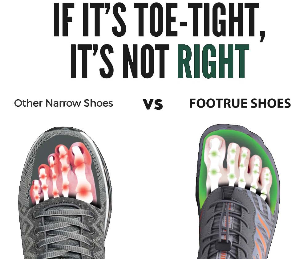 Narrowed shoes often squeeze the toes together, leading to misalignment and discomfort. Footrue's Wide Toe Box design encourages natural toe splay, allowing each toe to find its optimal position. This promotes better overall foot alignment and reduces the risk of issues like bunions and hammertoes.