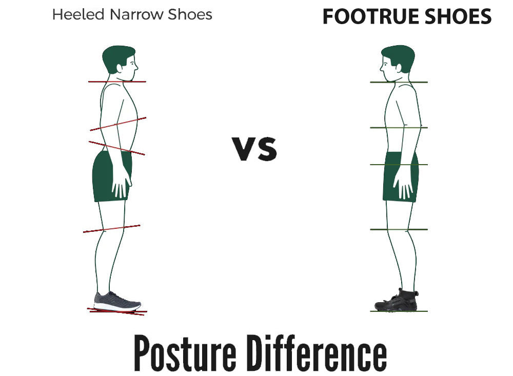 Traditional shoes often feature elevated heels and stiff soles, which can disrupt the natural alignment of the foot. Footrue shoes, on the other hand, typically have a flat sole and minimal arch support,allowing the foot to rest in its natural position. This encourages a more neutral alignment of the ankle, knee, and hip joints, which is essential for maintaining good posture.